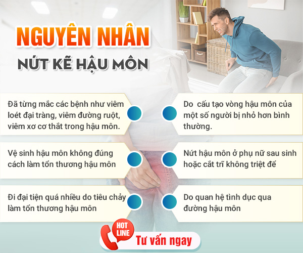 Do quan hệ tình dục bằng hậu môn không an toànQuan hệ bằng hậu môn kéo dài, không an toàn sẽ khiến hậu môn bị tổn thương và là nguyên nhân gây nứt kẽ hậu môn. Đây là nguyên nhân gây nứt kẽ hậu môn thường gặp ở các cặp đôi thích sự mới lạ hay các cặp đôi đồng tính.