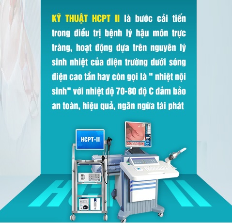 ► Hỗ trợ điều trị bằng phương pháp HCPT: Đây là hai phương pháp tiên tiến được áp dụng để trị các bệnh lý ở hậu môn – trực tràng đặc biệt là bệnh trĩ ở giai đoạn 4 gây hiện tượng đau ngoài ra máu. Các chuyên gia sẽ đưa thiết bị này vào hậu môn để loại bỏ các tổ chức gây bệnh và búi trĩ, hỗ trợ làm lành tổn thương, đồng thời cầm máu và ngăn chặn chảy máu ở đường tiêu hóa.