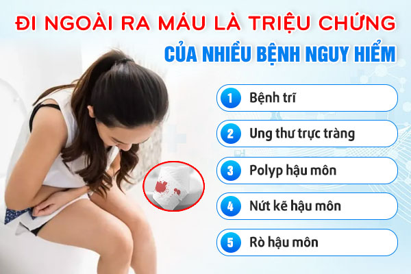 Đi ngoài ra máu là tình trạng khi đi đại tiện thấy máu lẫn trong phân, ra sau phân hay thấm vào giấy vệ sinh. Nhiều người thường chủ quan với triệu chứng này và chỉ cho rằng mình bị táo bón bình thường hoặc nóng trong người.