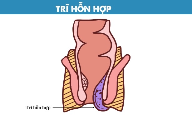 Trĩ hỗn hợp là tình trạng các búi trĩ nội và trĩ ngoại cùng tồn tại và liên kết với nhau. Ban đầu, người bệnh có thể chỉ bị trĩ nội, nhưng theo thời gian, khi các búi trĩ phát triển và sa ra ngoài, chúng kết hợp với trĩ ngoại tạo thành trĩ hỗn hợp.